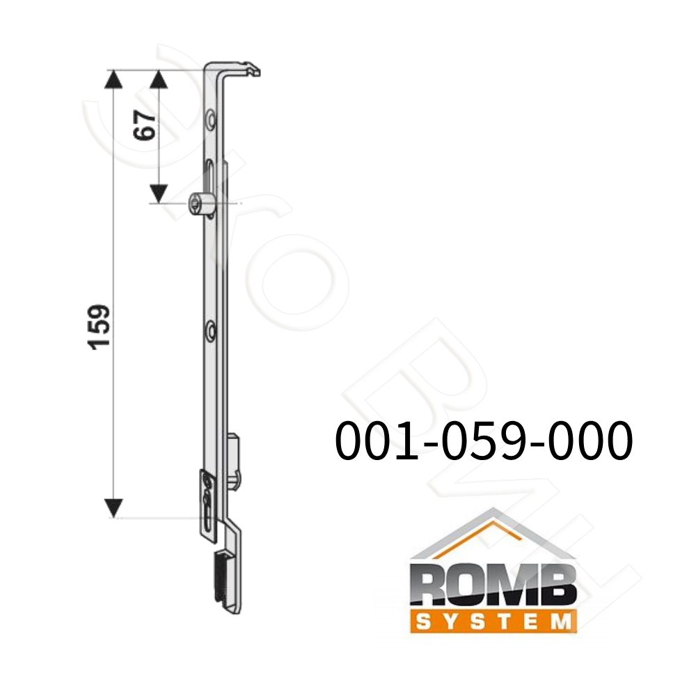 Верхний концевик Romb 001-059-000 - это оригинальная деталь польской поворотно-откидной системы, предназначенная для установки на верхний край поворотной створки пластикового окна. Он служит для передачи движения от основного привода вверх и обеспечивает дополнительную точку прижима в верхней вертикальной части конструкции.